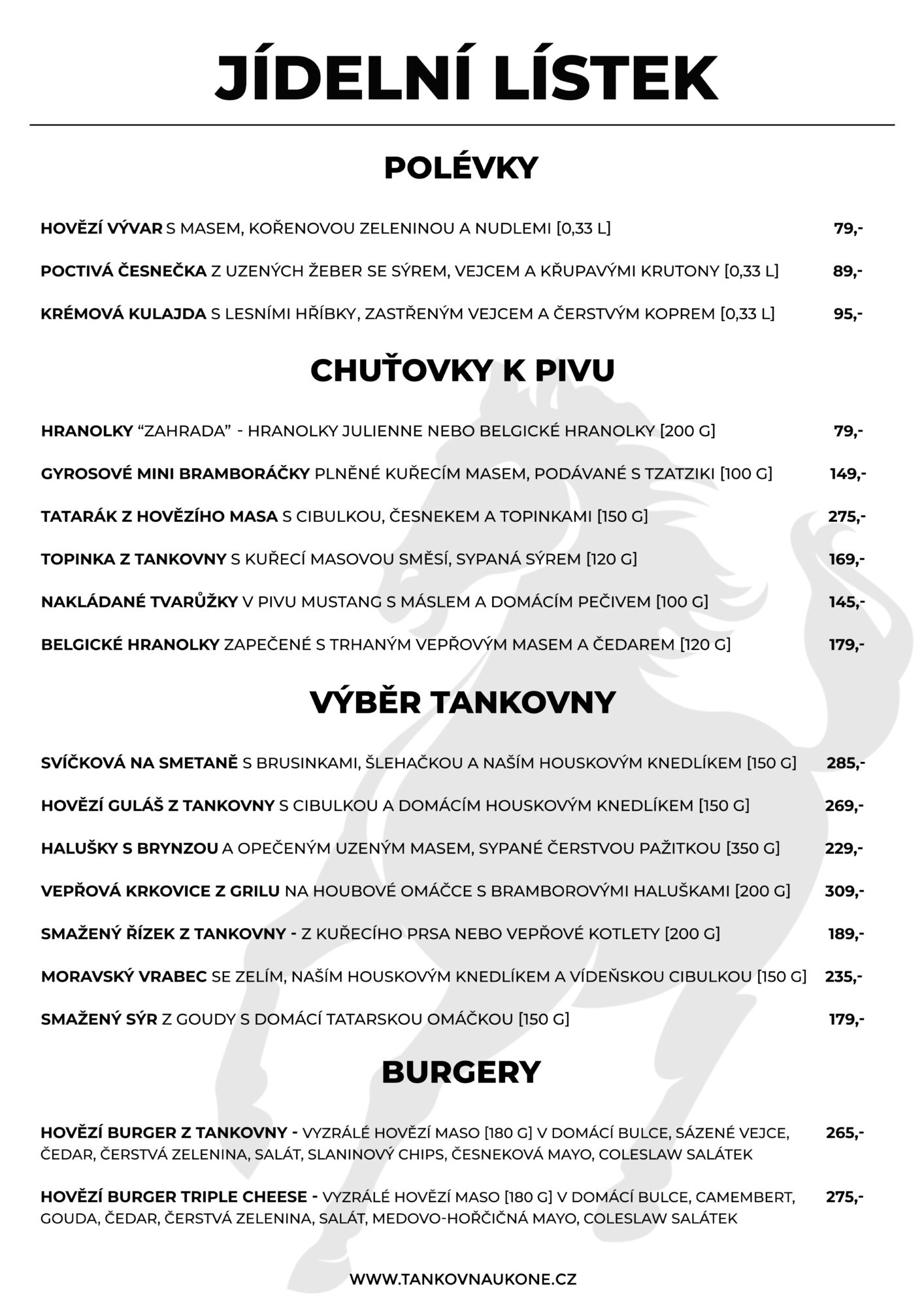 V Tankovně U KONĚ si zakládáme na pravé české kuchyni a poctivých surovinách. Všechna jídla připravujeme z čerstvých a kvalitních ingrediencí, aby chutnala přesně tak, jak mají.